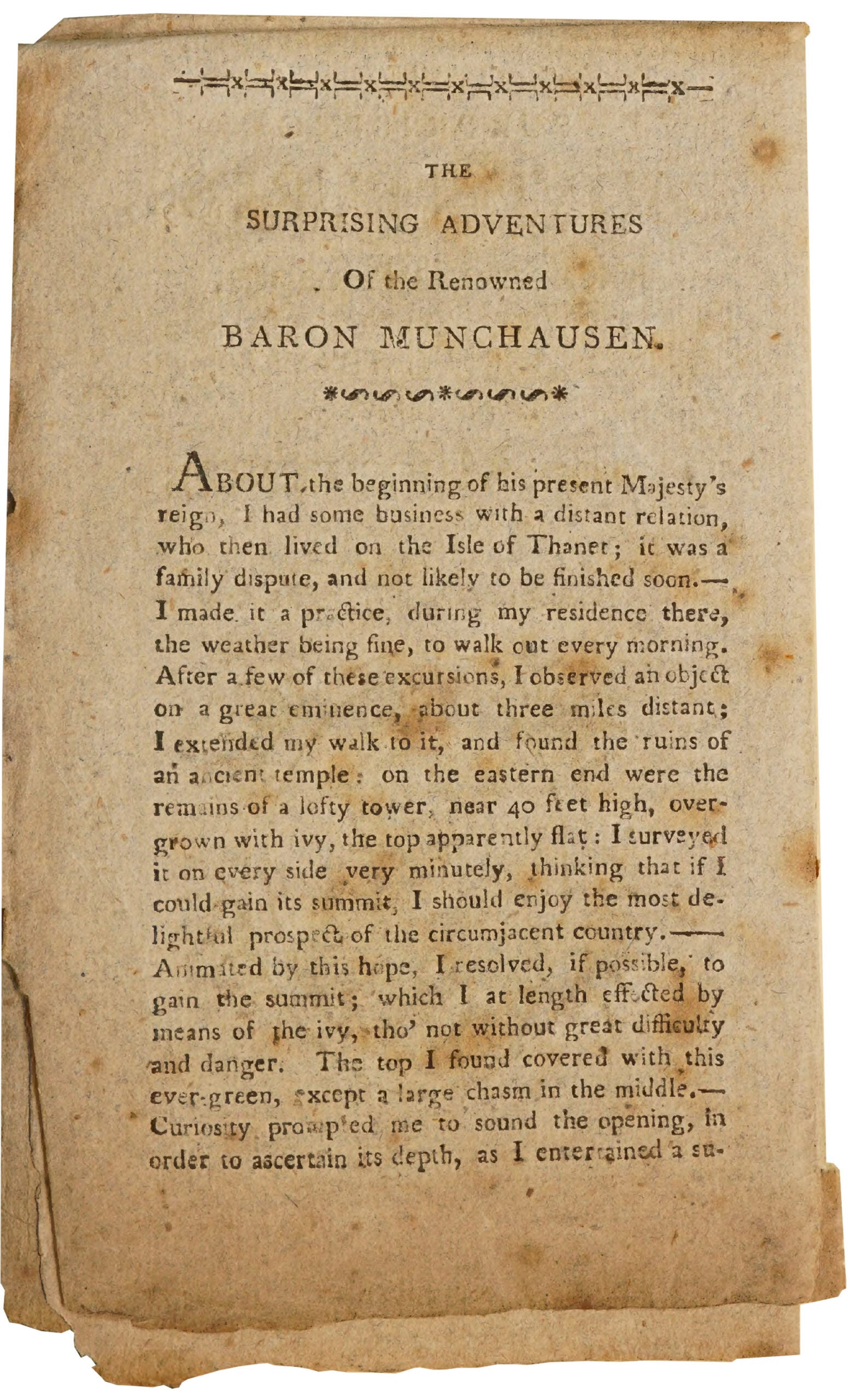 What about travel stories where somebody makes a satire of a society like Gulliver’s Travels? Well, Gulliver’s Travels is pure fiction; it doesn’t have to say that it’s real. But Baron Munchausen is in the collection because he was loosely based on a real person, and his ridiculous adventures were presented as if they were autobiographical rather than the fiction of Rudolph Erich Raspe. This handful of examples barely scratch the surface, however, but perhaps they are helpful.